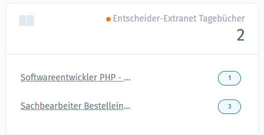 Bisher waren die Tagebücher ausschließlich unter Jobs/Projekte » Extranet-Tagebücher erreichbar. Neue Kommentare oder Bewertungen im Entscheider-Extranet sind damit schneller sichtbar.